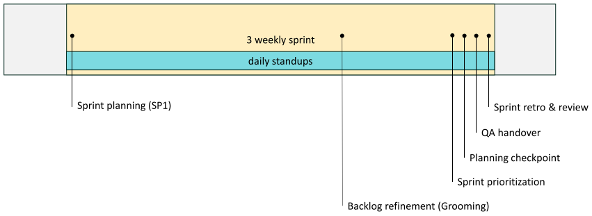 - Day 11 to 15 : Regression week with whole team involved in testing. Developers fix regression bugs found