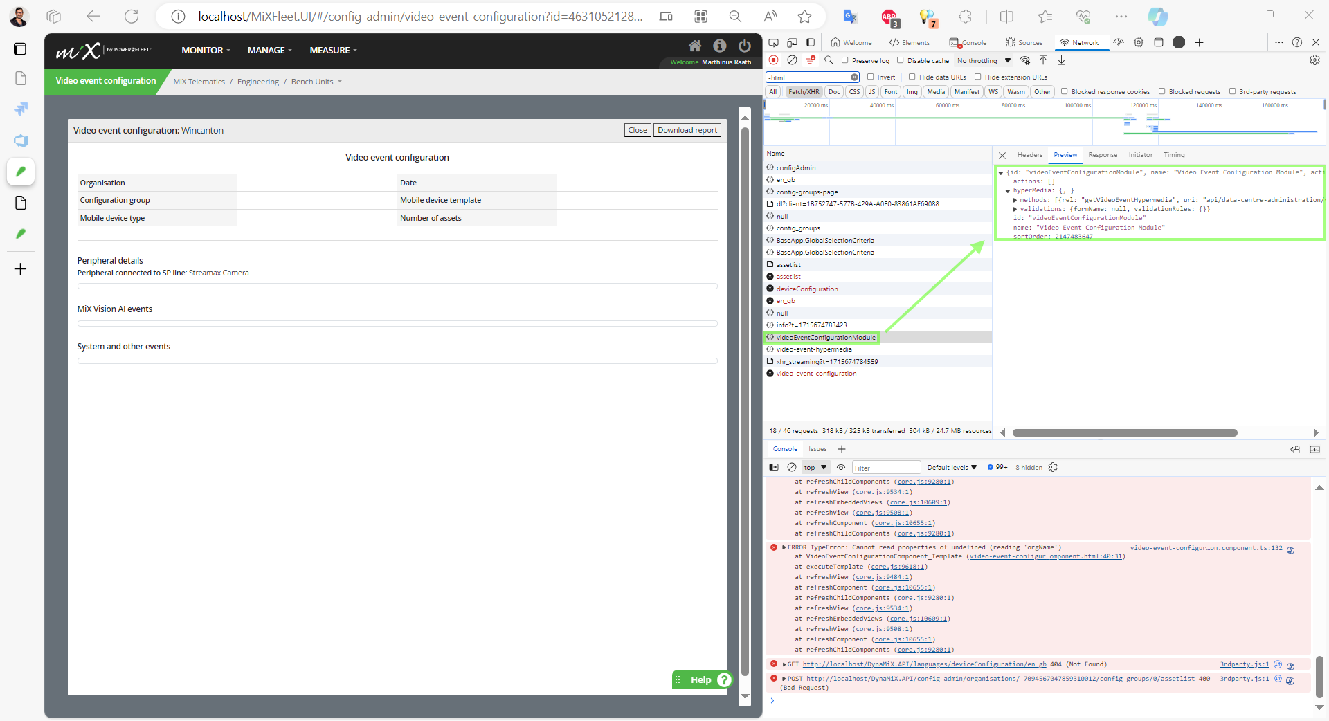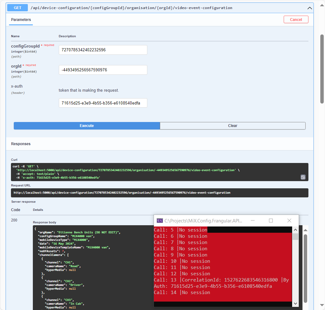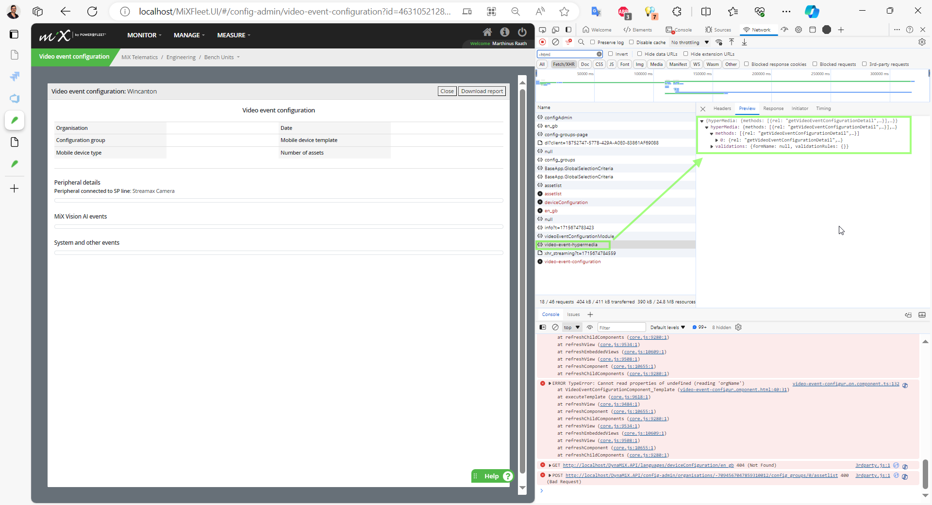 In order to just test all of this, I forced the download button to call the hypermedia method “getVideoEventConfigurationDetail”.