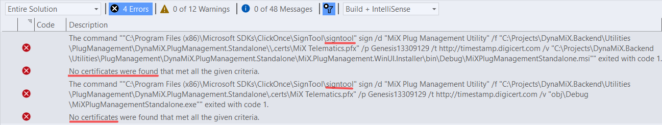 This is most likely (as the error shows) and issue with the signing certificate not being found.
